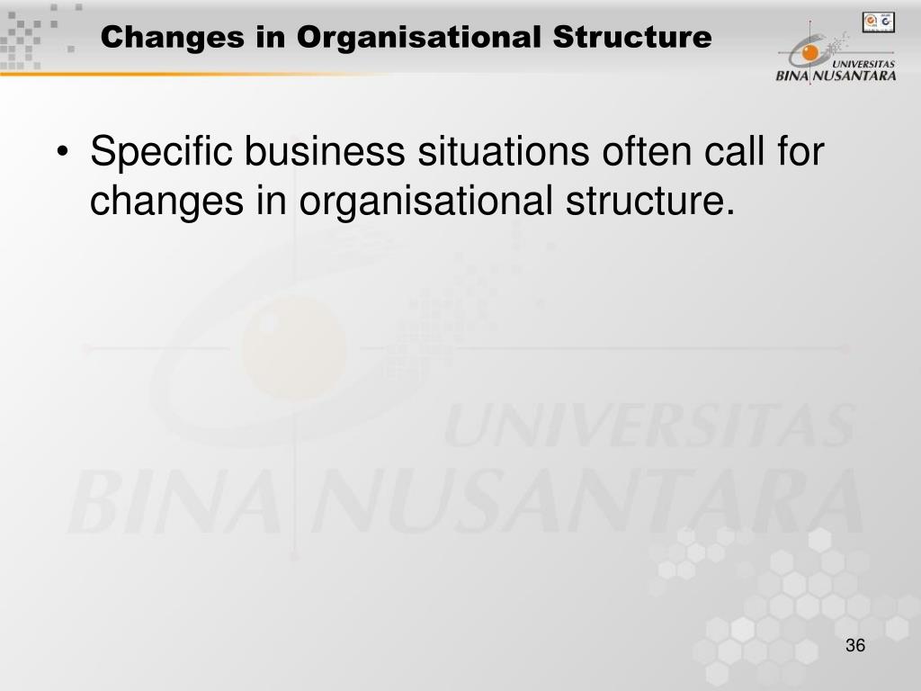 Changes in Organisational Structure • Specific business situations often call for changes in organisational structure.