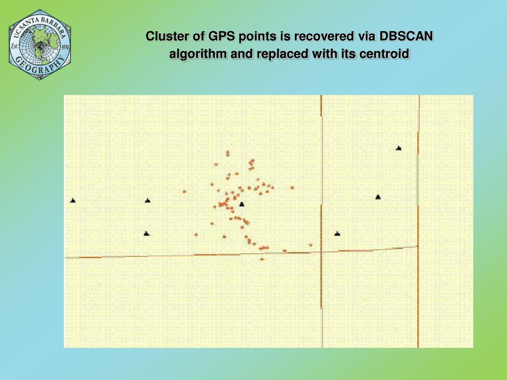Cluster of GPS points is recovered via DBSCAN algorithm and replaced with its centroid