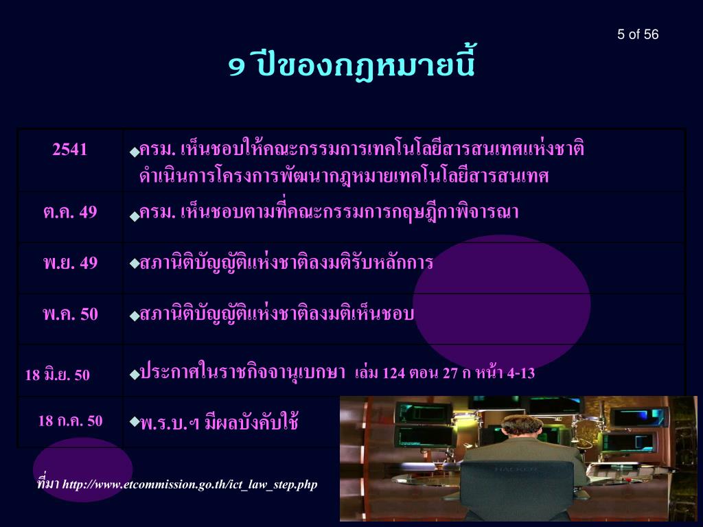 9 ปีของกฎหมายนี้ 5 of 56 ที่มา http://www.etcommission.go.th/ict_law_step.php