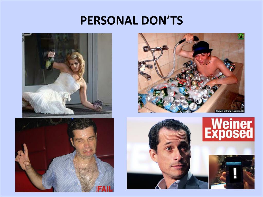 PERSONAL DO’S • Maintain a healthy status on all profiles at all times. What does this mean? • Keep personal away from professional!! • Do not display anything you wouldn’t want your mother to see. Why?? • Be careful because you don’t know who is looking for you!! • Be yourself but within moderation. Your personal side can always lead to your professional side!!