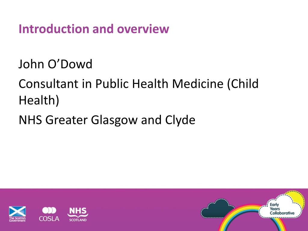 Introduction and overview John O’Dowd Consultant in Public Health Medicine (Child Health) NHS Greater Glasgow and Clyde