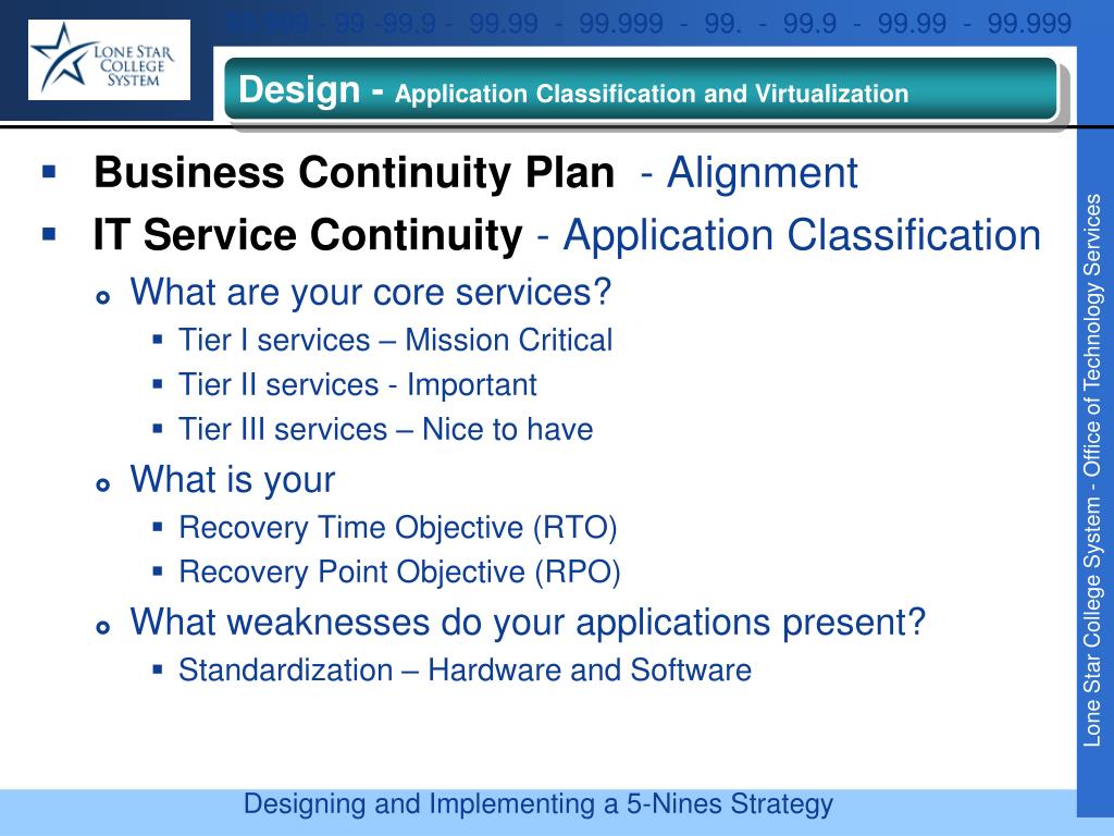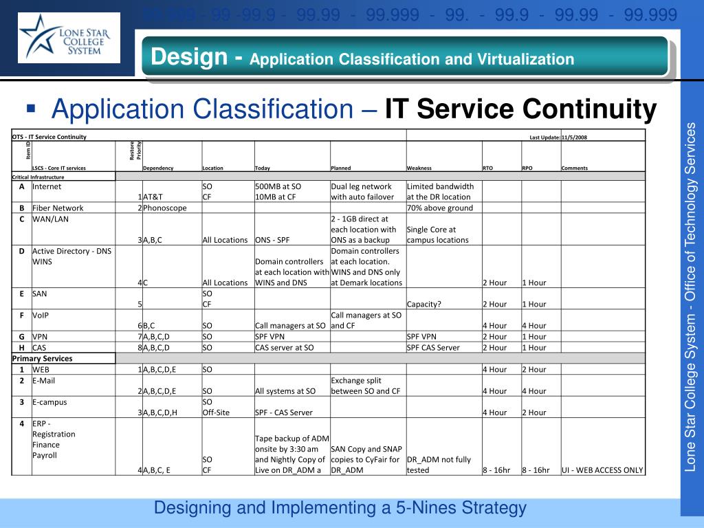Design - Application Classification and Virtualization • Application Classification – IT Service Continuity