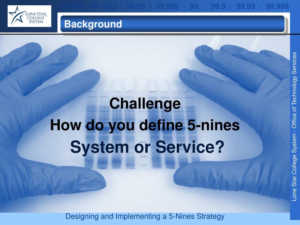 Background System or Service? Challenge How do you define 5-nines