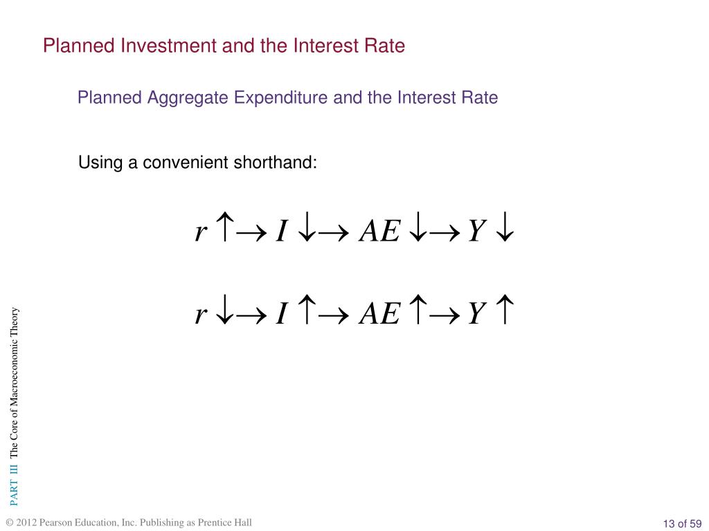 Planned Investment and the Interest Rate Planned Aggregate Expenditure and the Interest Rate Using a convenient shorthand: