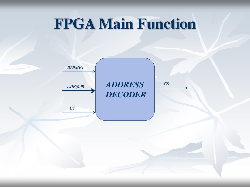 ADDRESS DECODER BE0,BE1 CS ADR(6:0) CS FPGA Main Function
