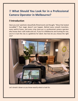 Professional Camera Operators in Melbourne: Capturing Quality Moments with Strea