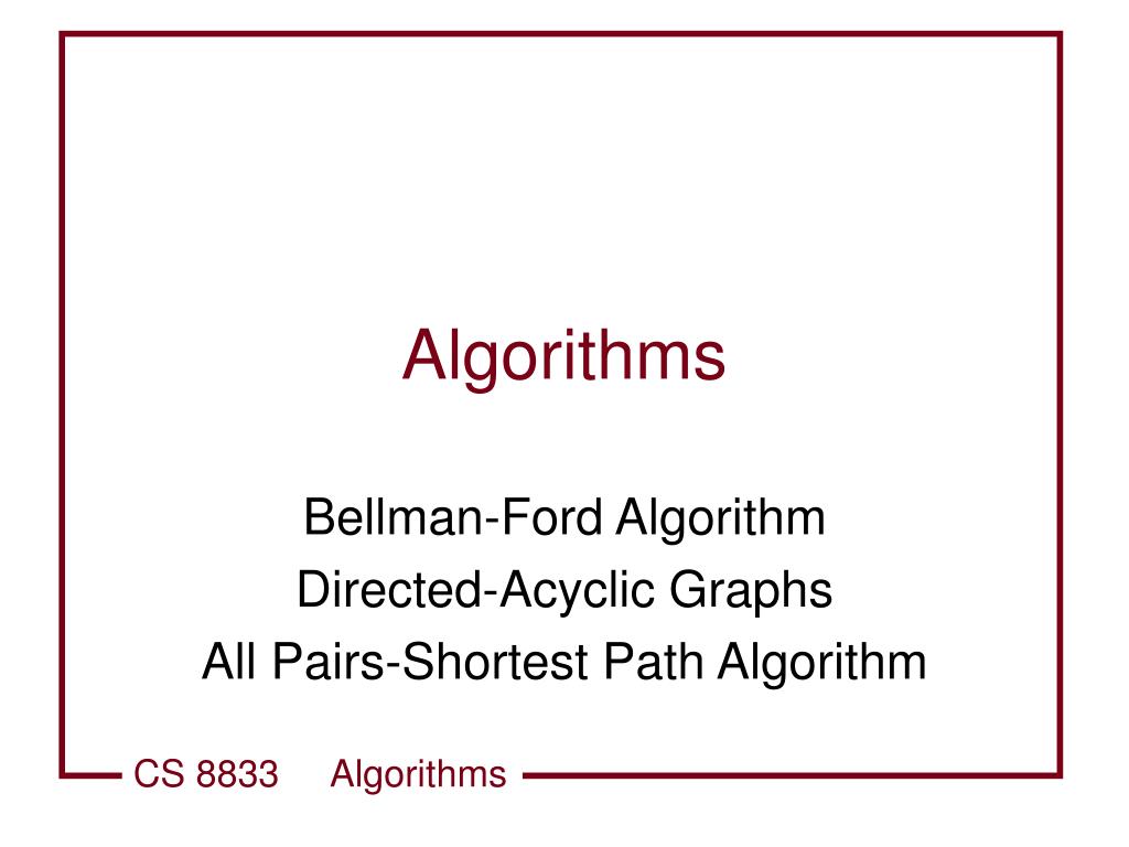 Algorithms Bellman-Ford Algorithm Directed-Acyclic Graphs All Pairs-Shortest Path Algorithm