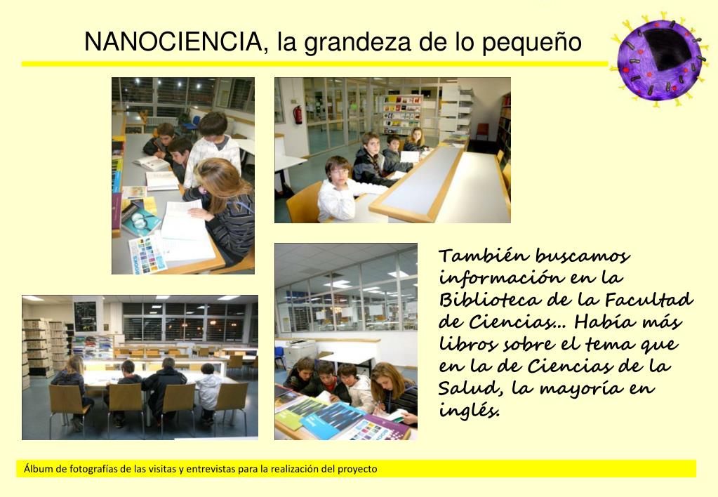 También buscamos información en la Biblioteca de la Facultad de Ciencias... Había más libros sobre el tema que en la de Ciencias de la Salud, la mayoría en inglés.