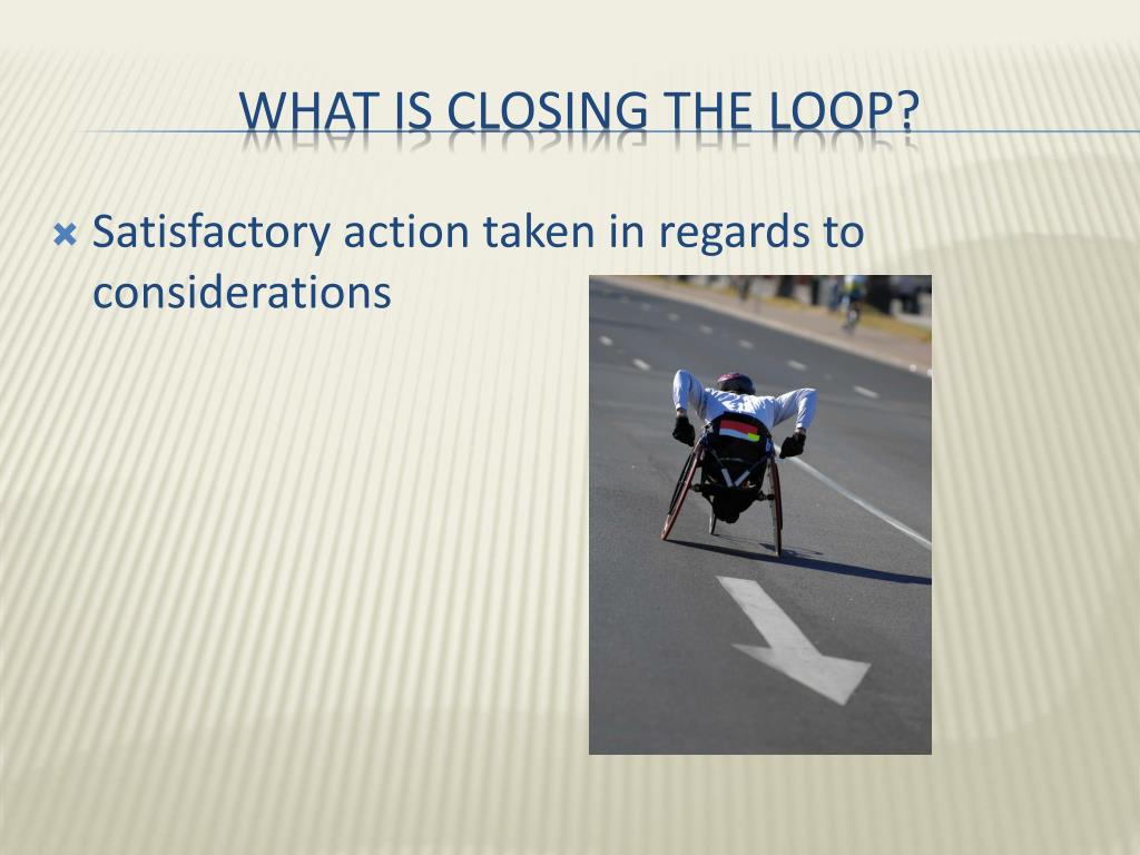 Satisfactory action taken in regards to considerations What is closing the LOOP?