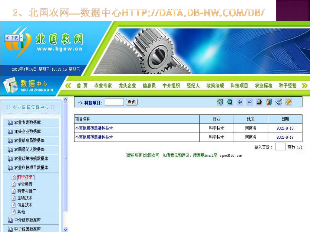 第十一章 数据事实检索 ( 下). 二、数据库检索 免费数据库 收费 数据库. (一) 免费数据库. 1、福建省农业科学院植物保护研究所 —— 植保数据共享中心 “ 农作物病虫害基础数据库”. 2、北国农网 — 数据中心 http://data.db-nw.com/db/. 3、河南农业信息网 —— 数据中心. 如:玉米主要病害防治. 4 、金农网 —— 农业科技. 植物保护. 5 、国家农业科学数据库中心. 如:作物资源图片库. 6 、中国科学院科学数据库. (二)收费数据库 1 、中国年鉴全文数据库. 高级检索.
