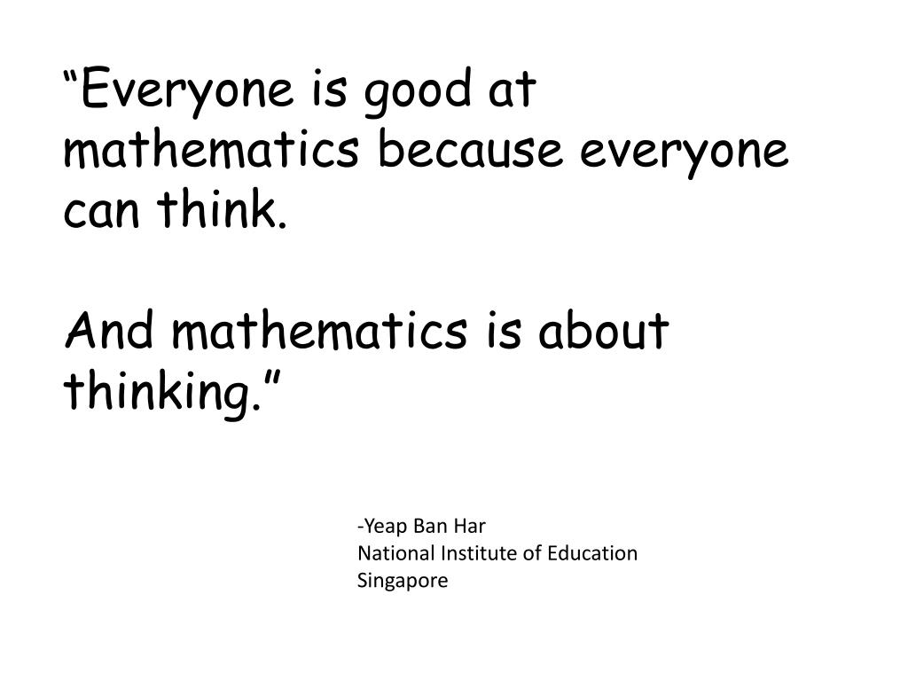 “Everyone is good at mathematics because everyone can think. And mathematics is about thinking.” -Yeap Ban Har National Institute of Education Singapore