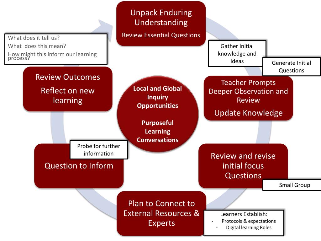 Focus When planning for inquiry consider…. • Competencies, skills and fluencies • Scaffolding thinking outside the box • Creating and contributing to Globally Connected Learning Communities
