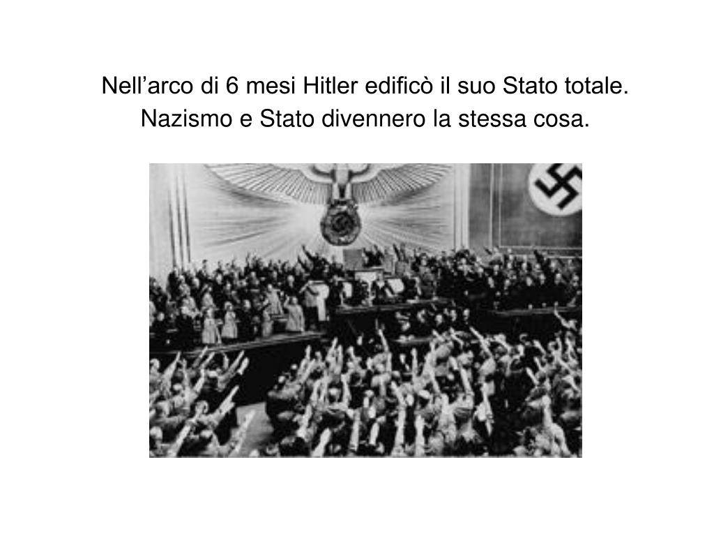 Nell’arco di 6 mesi Hitler edificò il suo Stato totale. Nazismo e Stato divennero la stessa cosa.