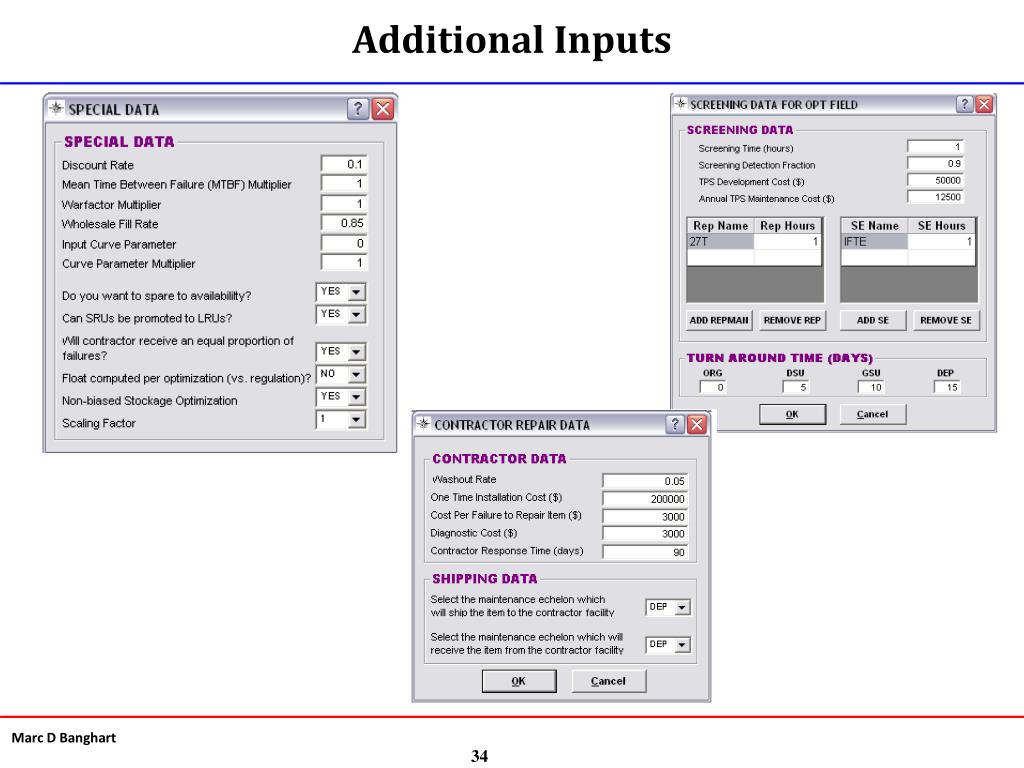Important Inputs • Twelve Categories (DoD COMPASS model) • System information • Supply • Common labor • Transportation • Support equipment • Repairmen • End item • Line Replaceable Unit (LRU) • Shop Replaceable Unit (SRU) • Non-reparable LRU/SRU
