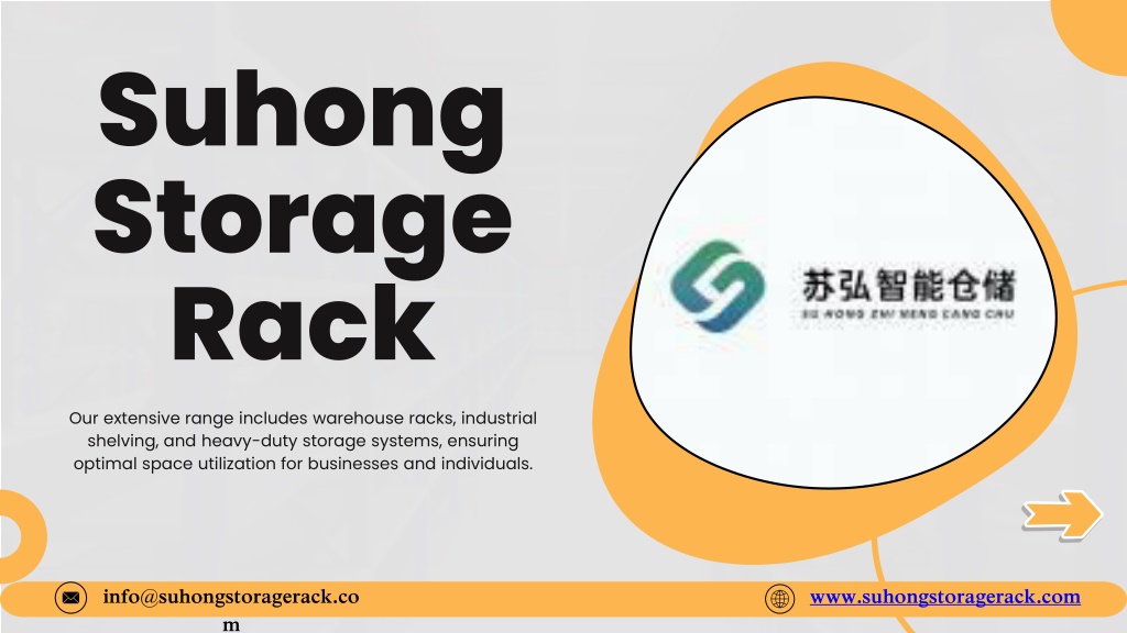 Suhong Storage Rack Our extensive range includes warehouse racks, industrial shelving, and heavy-duty storage systems, ensuring optimal space utilization for businesses and individuals. • info@suhongstoragerack.com www.suhongstoragerack.com