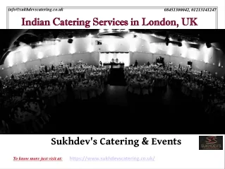 info@sukhdevscatering.co.uk 08451300042, 01213141247 Indian Catering Services in London, UK Sukhdev's Catering & Events To know more just visit at: