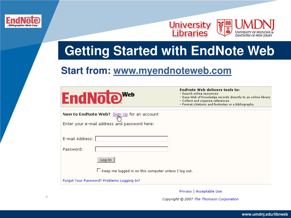 Getting Started with EndNote Web Start from: www.myendnoteweb.com