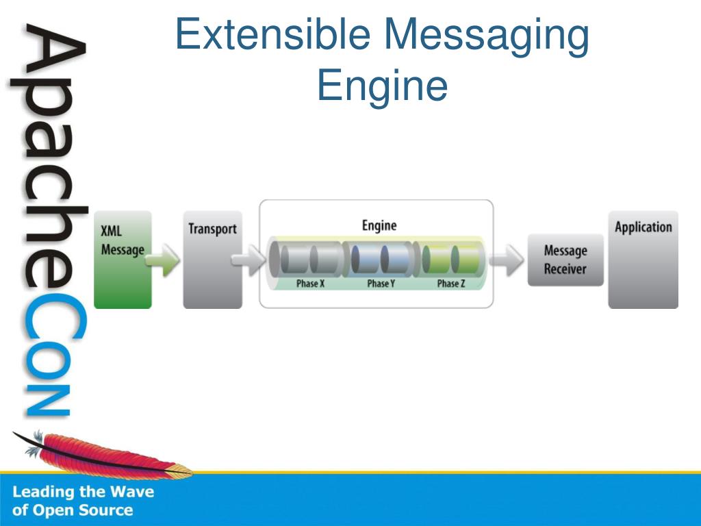 Axis2 Features • High performance XML processing model • Extensible Messaging Engine • Rich Information Model • Pluggable module, data binding, transports architecture • Can support XMLBeans, ADB, JAXB, JiBX, etc., • Ability to plug-in any WS-* implementation • Easy to use deployment model • Convenient programming abstractions • WSDL 1.1, 2.0 and SOAP 1.1, 1.2 support • WSDL 2.0 HTTP binding, mimicing REST style invocations • Cloud computing support • Auto-scaling on Amazon • Clustering support