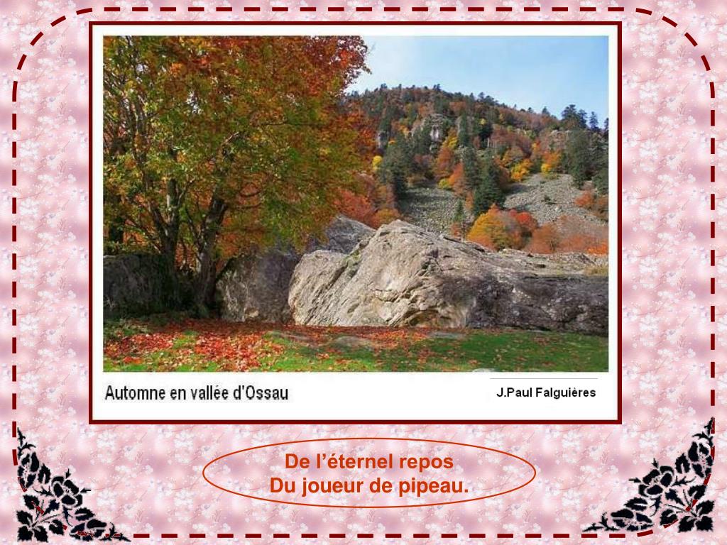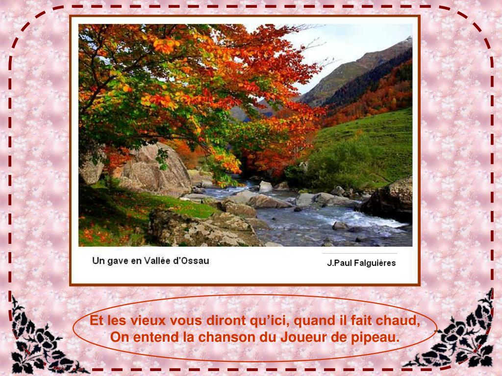Chanson : paroles et musique de Jean-Pierre Darraspe Interprétée par Les Chanteurs du Faget, groupe oloronais. Direction et contact : Jean Abadie Tél.05 59 39 20 08 Photos : J.P.Falguières, avec son aimable autorisation. Vous découvrirez bien d’autres merveilles de ma belle région sur son site : http://www.jpf-photo.com/ Diaporama de Jacky Questel, ambassadrice de la Paix Jacky.questel@gmail.com http://jackydubearn.over-blog.com/ Site : http://www.jackydubearn.fr/