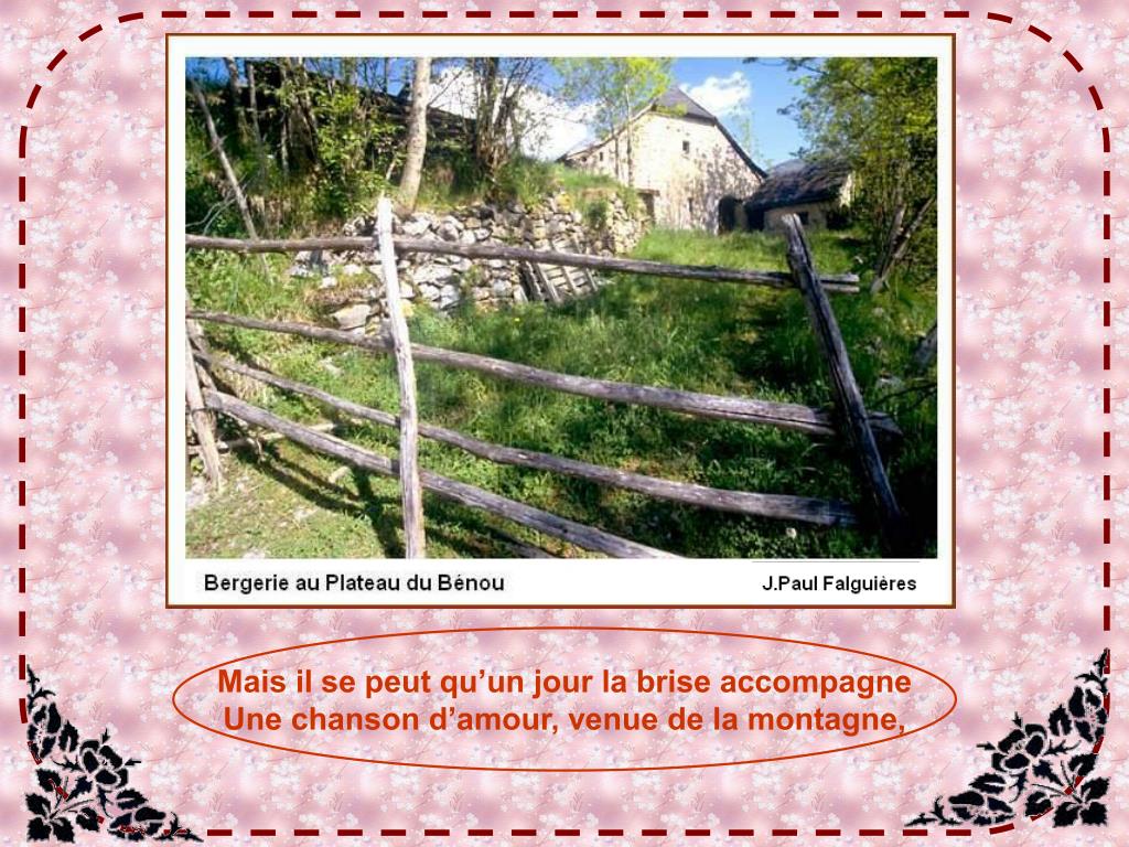 Mais il se peut qu’un jour la brise accompagne Une chanson d’amour, venue de la montagne,