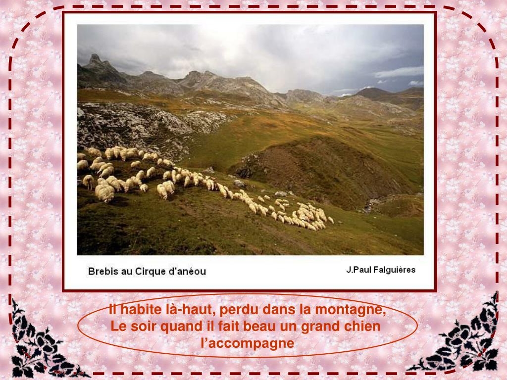 Il habite là-haut, perdu dans la montagne, Le soir quand il fait beau un grand chien l’accompagne