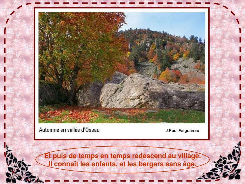 Et puis de temps en temps redescend au village. Il connaît les enfants, et les bergers sans âge.