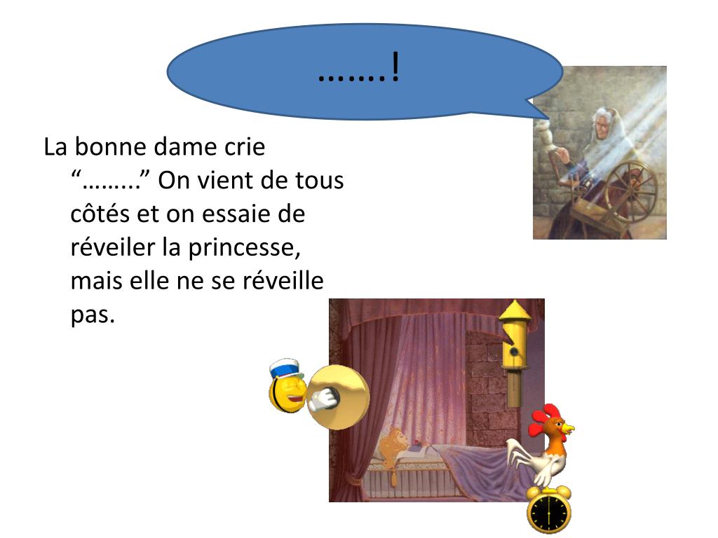 …….! La bonne dame crie“……...” On vient de touscôtés et on essaie de réveiler la princesse, maiselle ne se réveille pas.