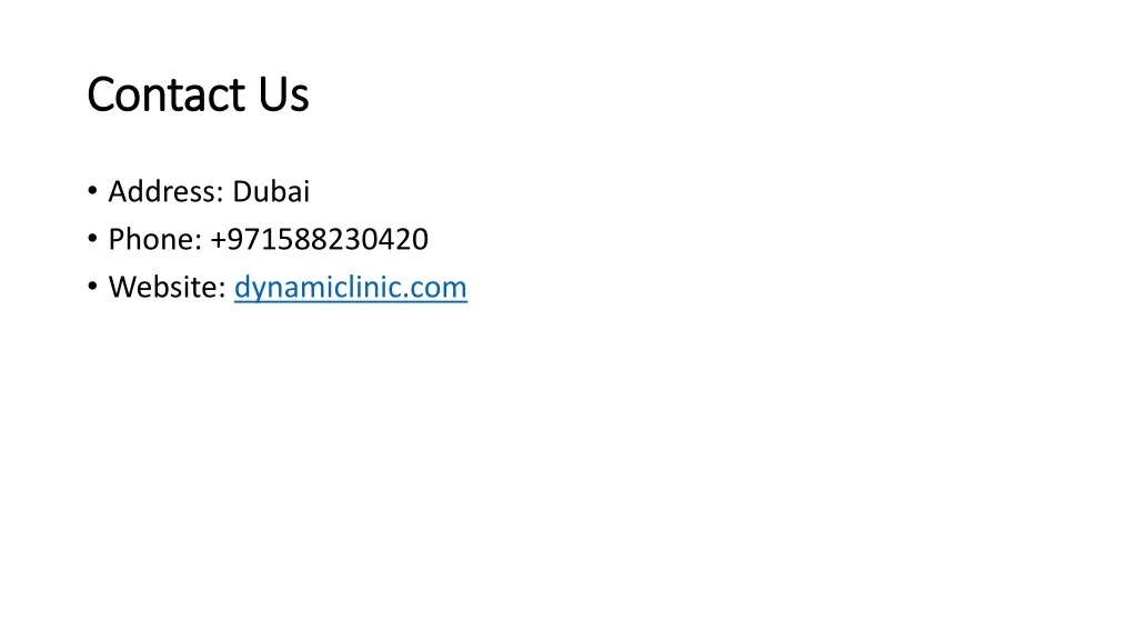 Contact Us • Address: Dubai • Phone: +971588230420 • Website: dynamiclinic.com