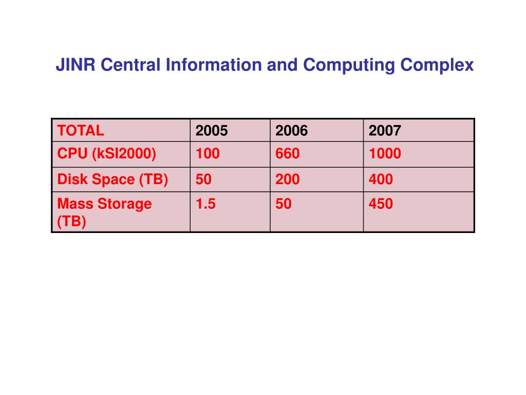 MYRINET cluster COMMON PC-farm LHC INTERACTIVE PC-farm LCG 10 – Interactive& UI 32 – Common PC-farm 30 – LHC 14 – MYRINET (Parallel) 20 – LCG 24 – servers CCIC JINR 130 CPU 17TB RAID-5