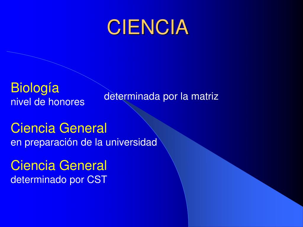 CIENCIA Biología nivel de honores Ciencia General en preparación de la universidad Ciencia General determinado por CST determinada por la matriz