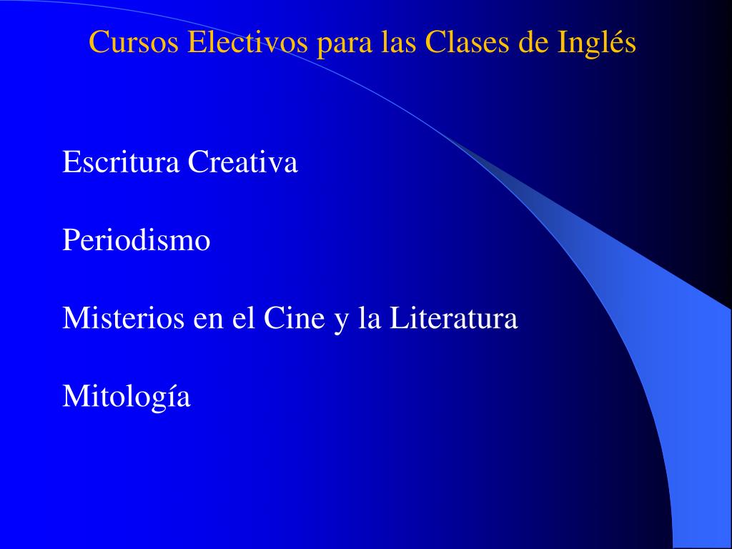 Cursos Electivos para las Clases de Inglés Escritura CreativaPeriodismoMisterios en el Cine y la LiteraturaMitología