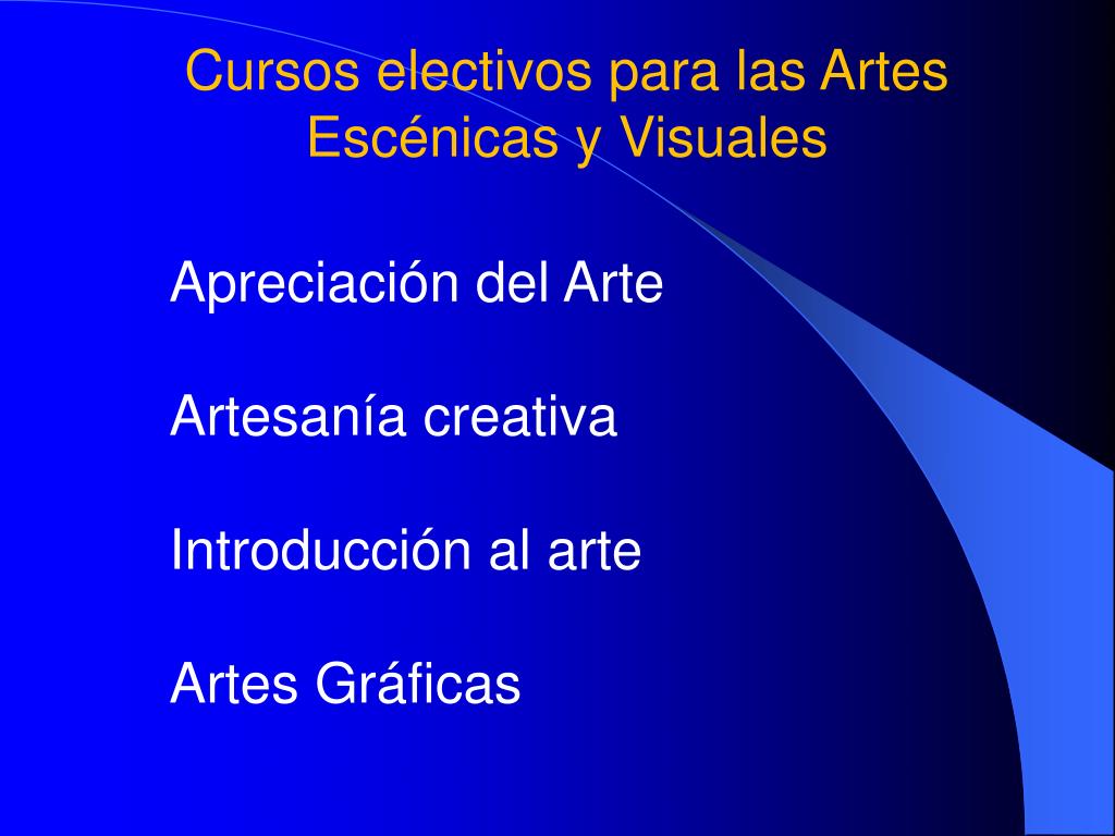 Cursos electivos para las Artes Escénicas y Visuales Apreciación del ArteArtesanía creativaIntroducción al arteArtes Gráficas