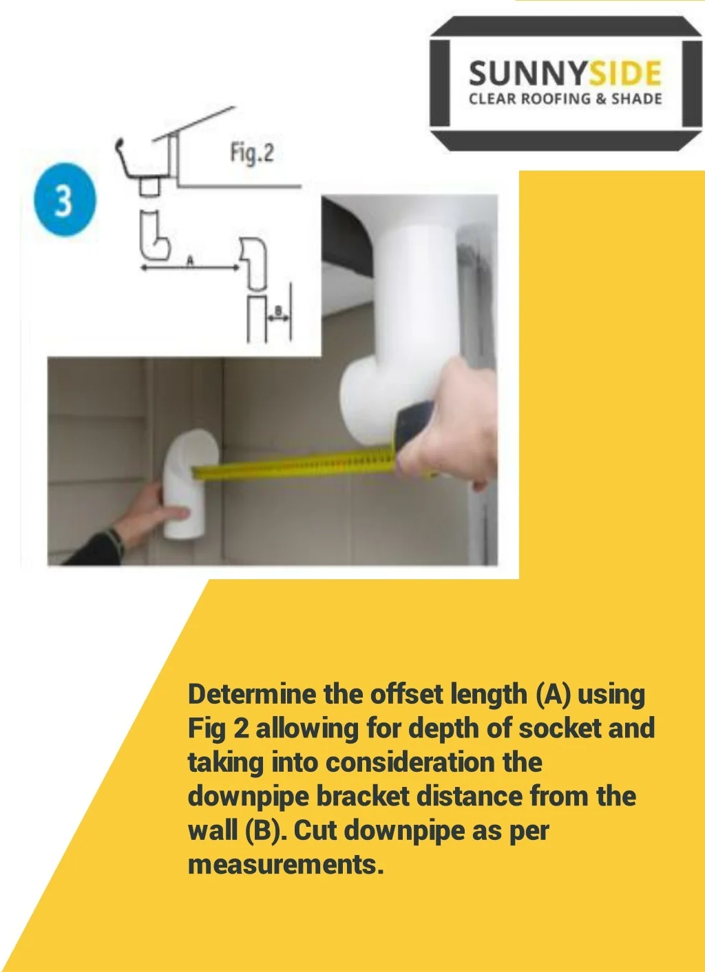 Determine the offset length (A) using Fig 2 allowing for depth of socket and taking into consideration the downpipe bracket distance from the wall (B). Cut downpipe as per measurements.