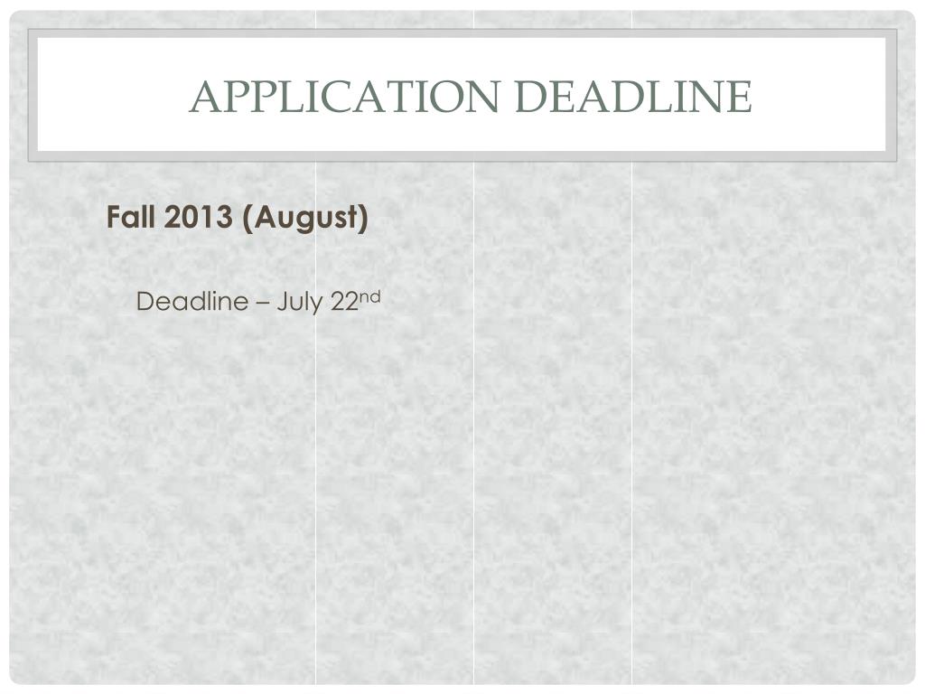 Application Deadline Fall 2013 (August) Deadline – July 22nd