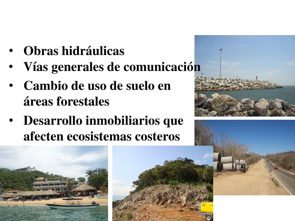 Obras hidráulicas • Vías generales de comunicación • Cambio de uso de suelo en áreas forestales • Desarrollo inmobiliarios que afecten ecosistemas costeros