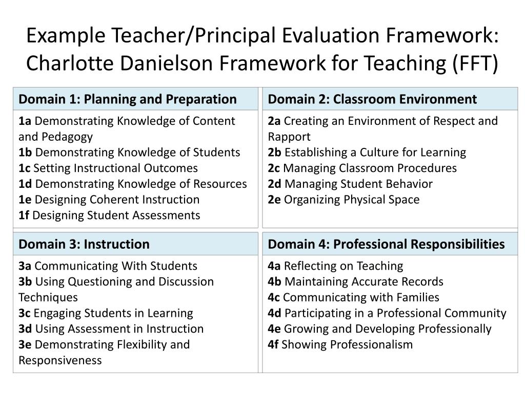 Example Teacher/Principal Evaluation Framework:Charlotte Danielson Framework for Teaching (FFT)
