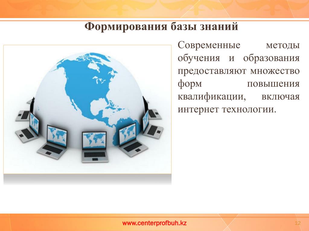 Современные методы обучения и образования предоставляют множество форм повышения квалификации, включая интернет технологии. Формирования базы знаний www.centerprofbuh.kz