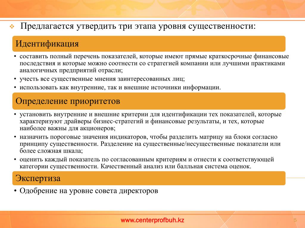 Предлагается утвердить три этапауровня существенности: www.centerprofbuh.kz