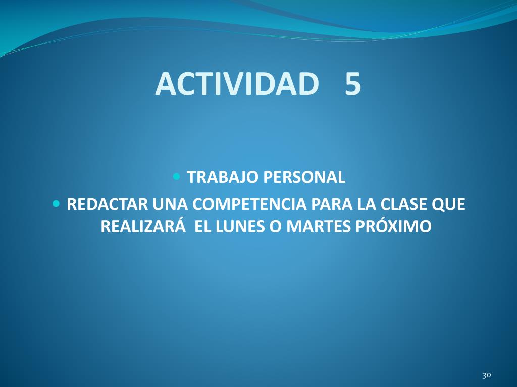 ACTIVIDAD 5 • TRABAJO PERSONAL • REDACTAR UNA COMPETENCIA PARA LA CLASE QUE REALIZARÁ EL LUNES O MARTES PRÓXIMO
