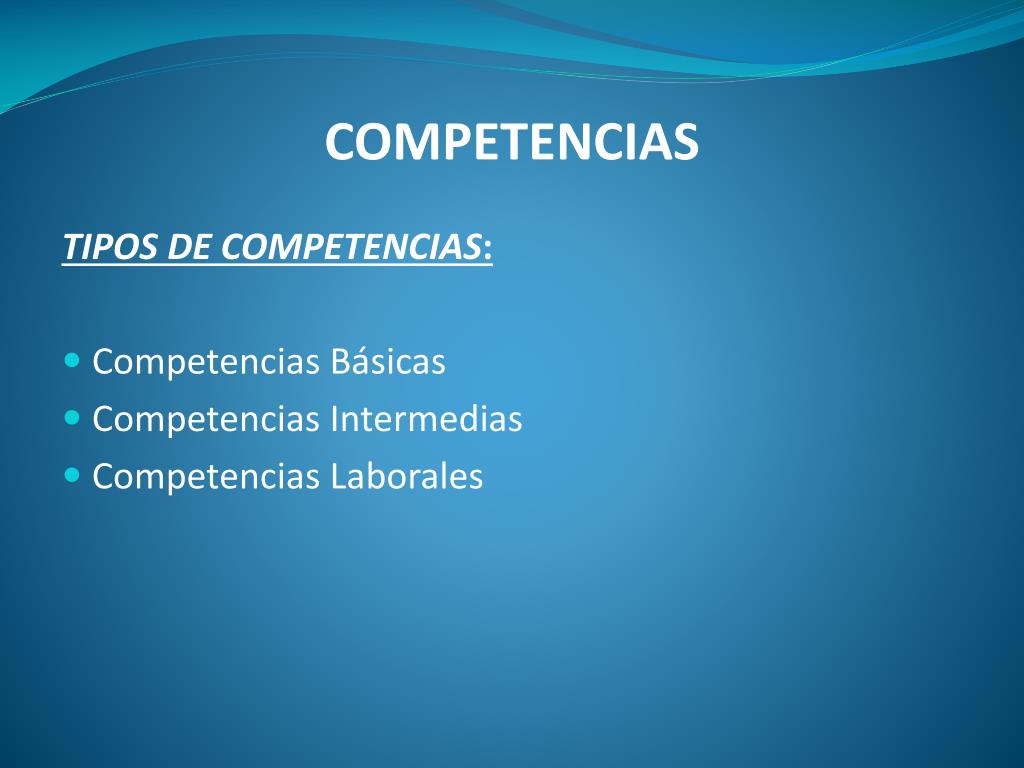 COMPETENCIAS TIPOS DE COMPETENCIAS: • Competencias Básicas • Competencias Intermedias • Competencias Laborales