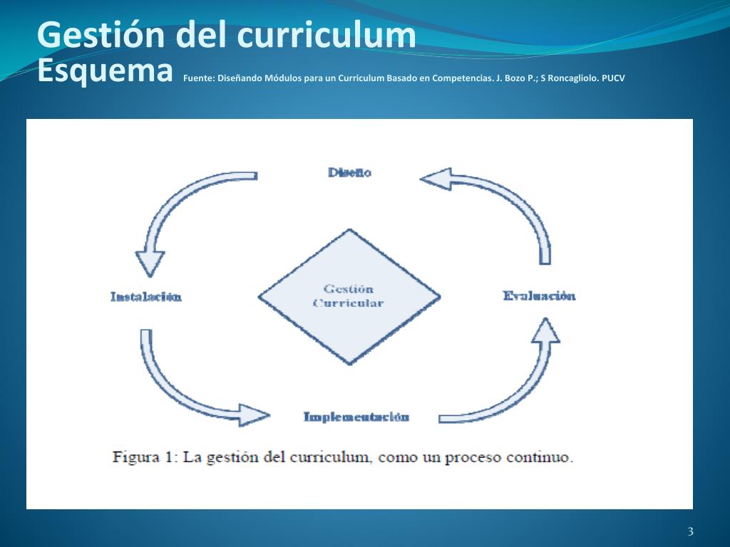 Gestión del curriculum EsquemaFuente: Diseñando Módulos para un Curriculum Basado en Competencias. J. Bozo P.; S Roncagliolo. PUCV