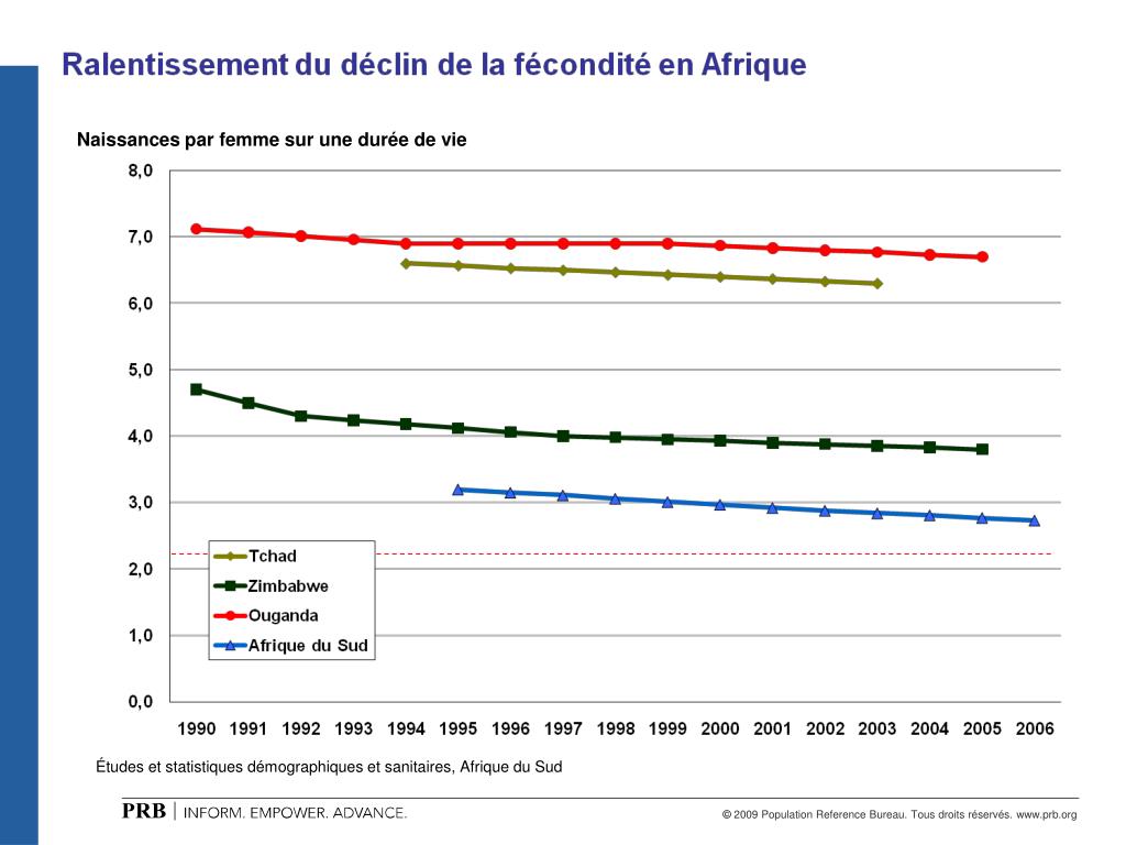 Lien entre pauvreté et fécondité, 2007 %age vivant avec moins de 2$ par jour Nombre moyen d'enfants par femme Population Reference Bureau, Population and Economic Development Linkages, 2007