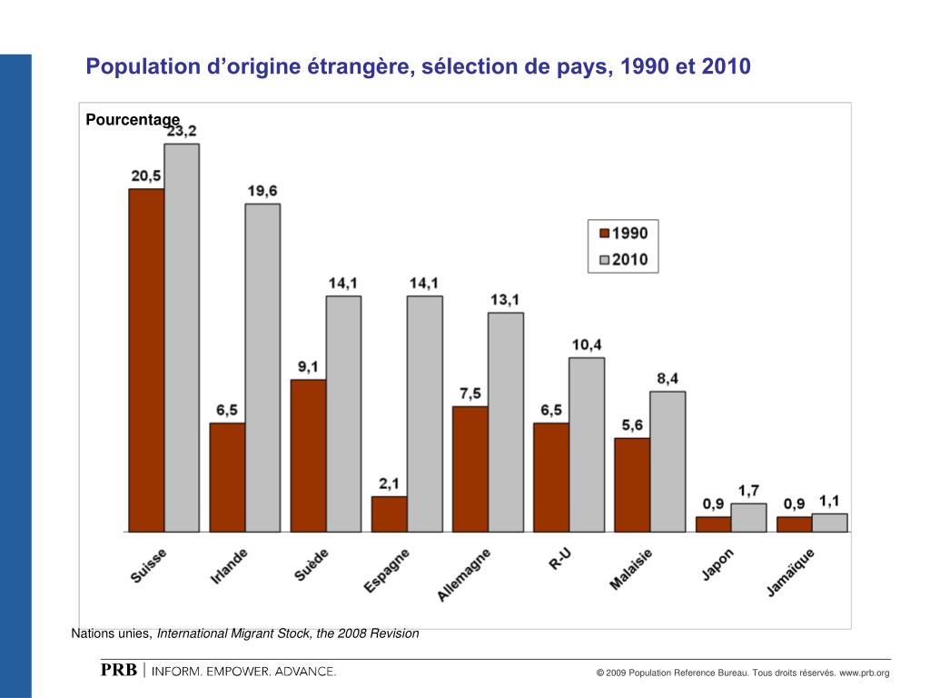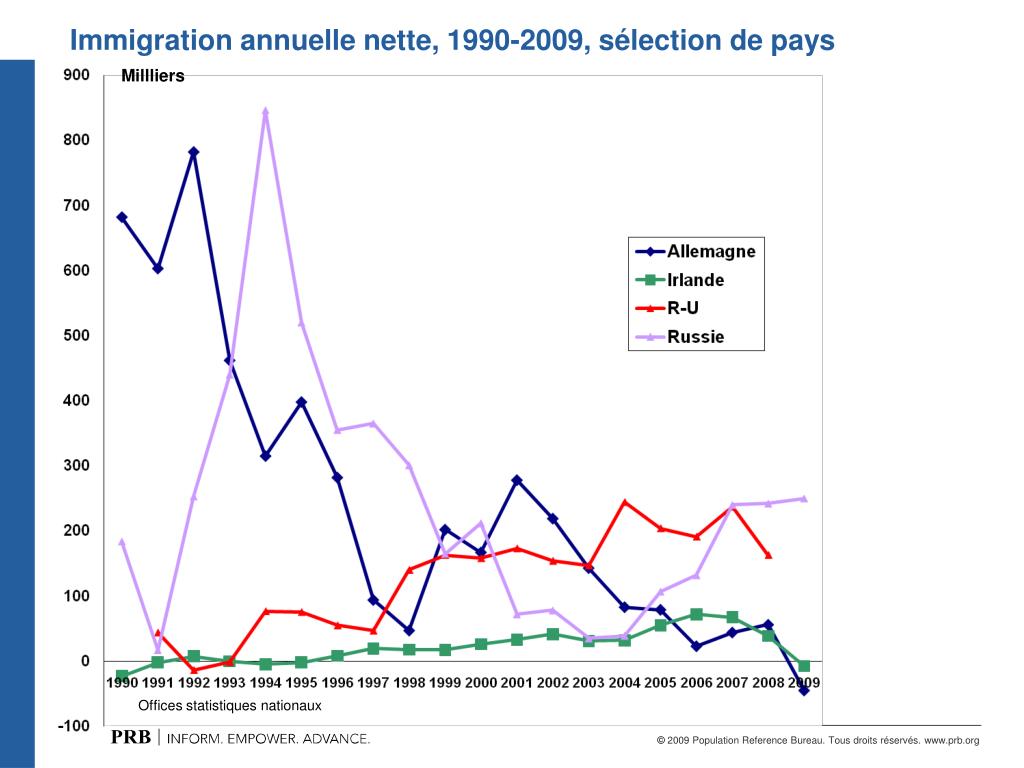 Immigration annuelle nette, 1990-2009, sélection de pays Millliers Offices statistiques nationaux