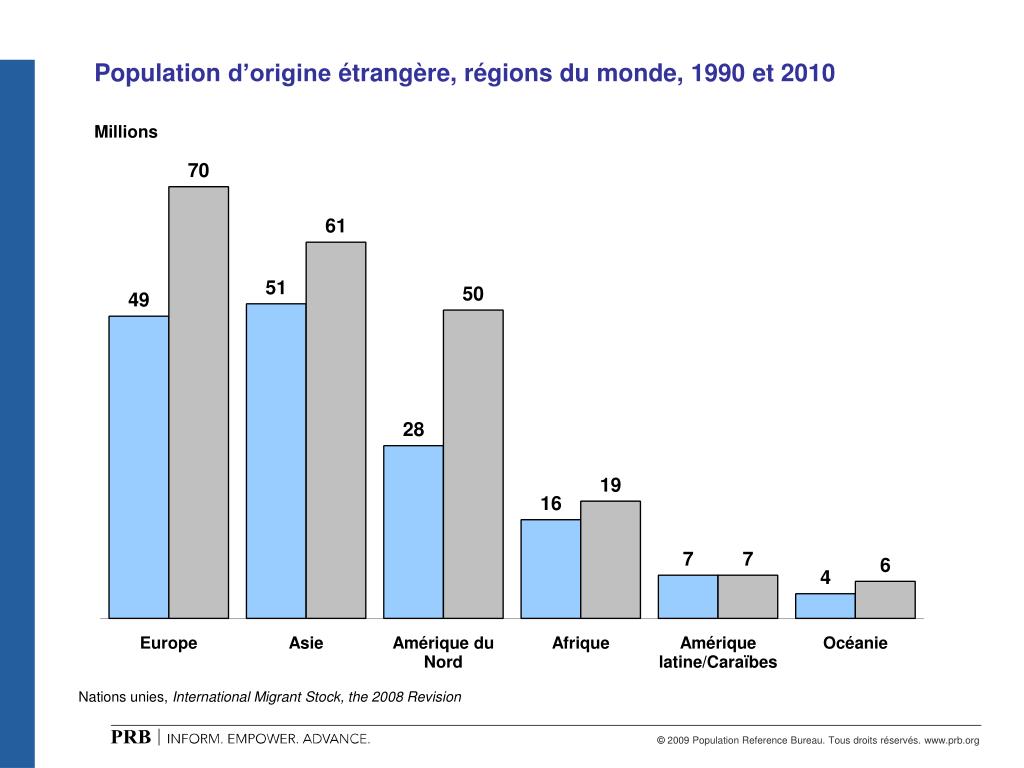 Population des régions du monde, 2009 et projections 2050 Millions Population Reference Bureau, Fiche de données sur la population mondiale