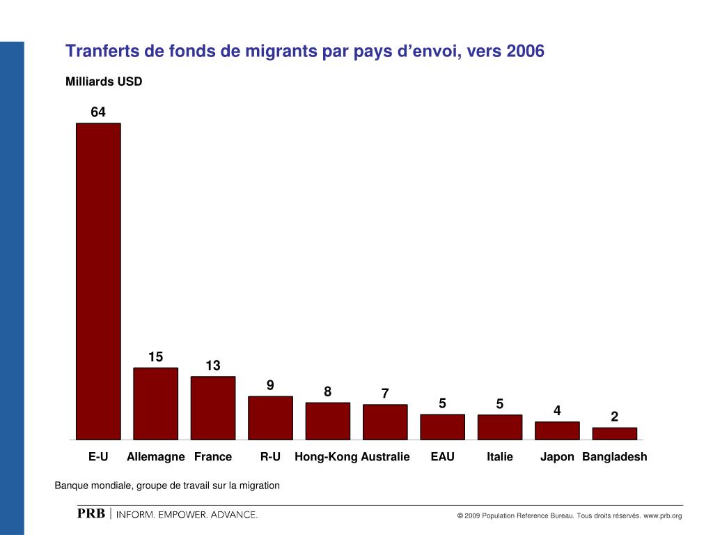 Lien entre le taux de croissance démographique et la croissance du PIB Croissance démographique annuelle, 1975-2004 (%) Taux de croissance annuel moyen du PIB par tête, 1975-2004 (%) Population Reference Bureau, Population and Economic Development Linkages 2007