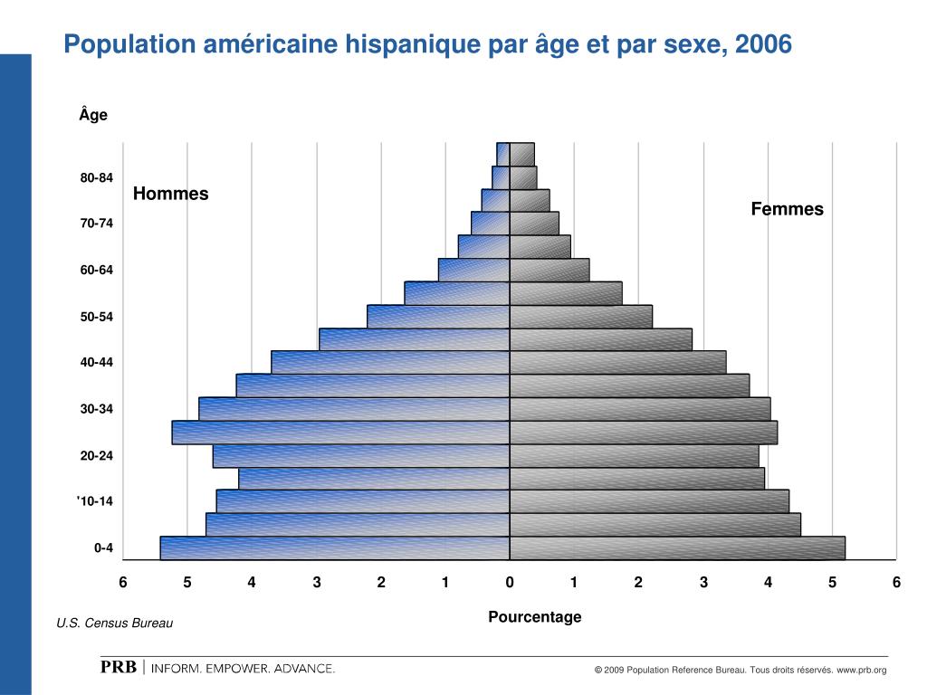 Population américaine hispanique par âge et par sexe, 2006 Âge Hommes Femmes Pourcentage U.S. Census Bureau
