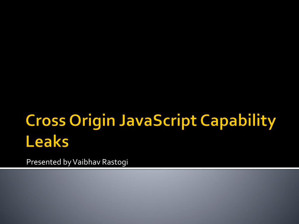 Cross Origin JavaScript Capability Leaks Presented by Vaibhav Rastogi
