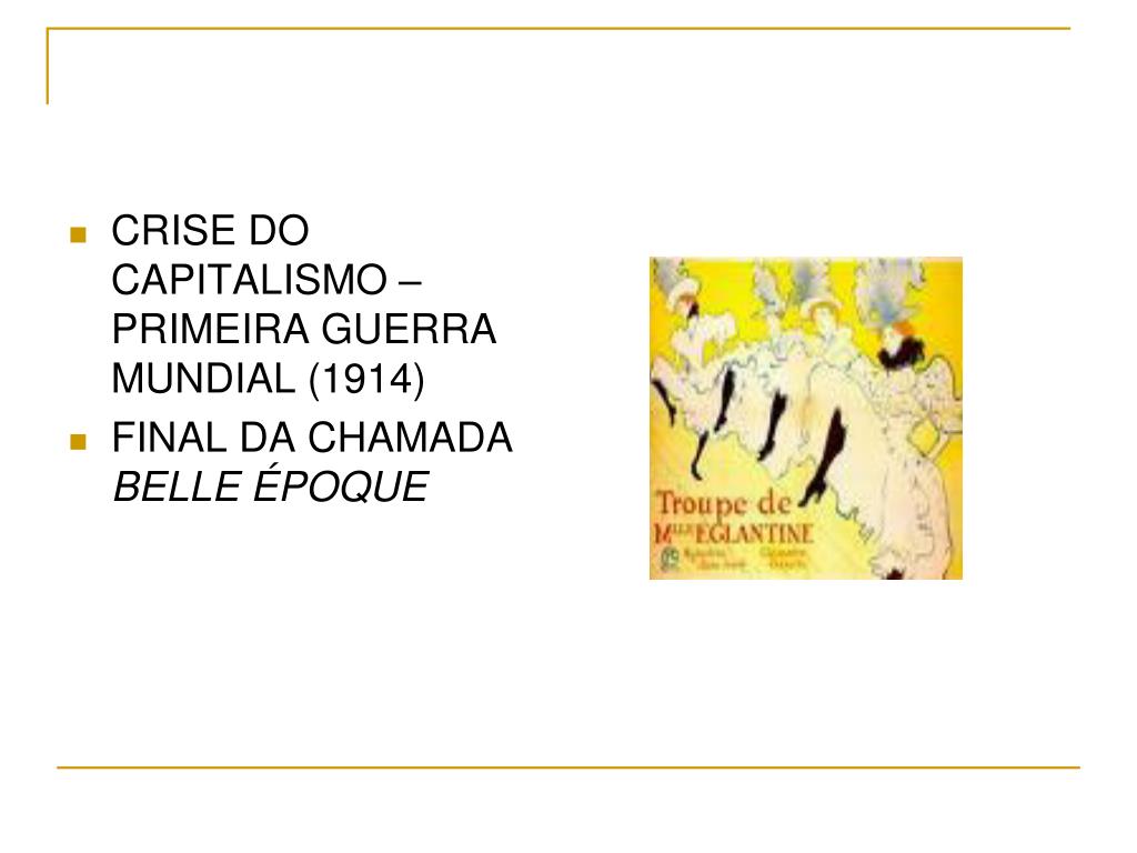 CRISE DO CAPITALISMO – PRIMEIRA GUERRA MUNDIAL (1914) • FINAL DA CHAMADA BELLE ÉPOQUE