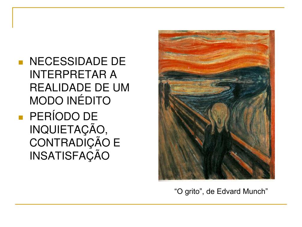 NECESSIDADE DE INTERPRETAR A REALIDADE DE UM MODO INÉDITO • PERÍODO DE INQUIETAÇÃO, CONTRADIÇÃO E INSATISFAÇÃO “O grito”, de Edvard Munch”