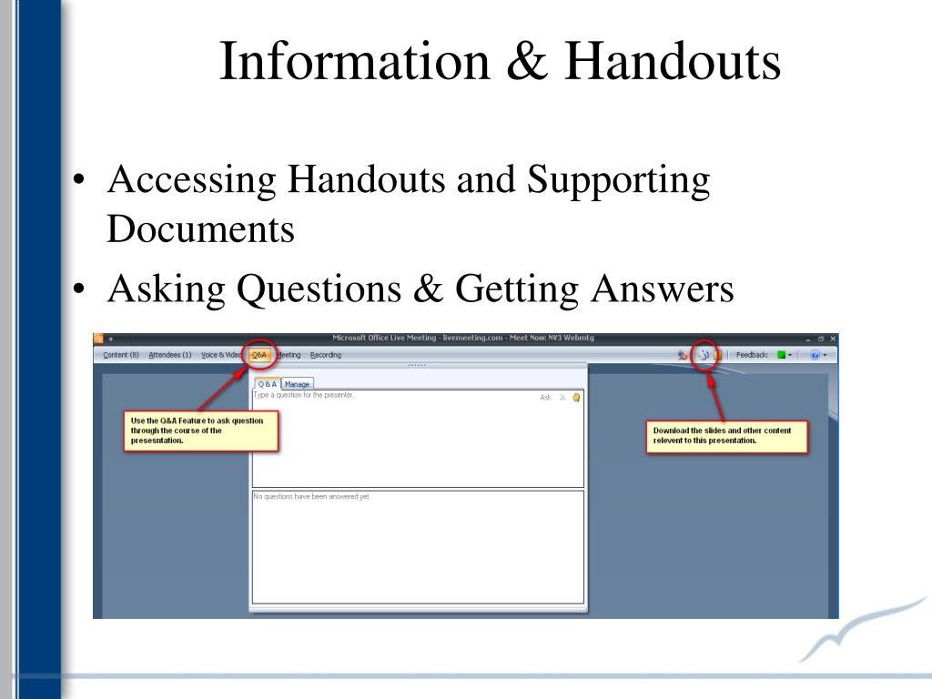 Information & Handouts • Accessing Handouts and Supporting Documents • Asking Questions & Getting Answers